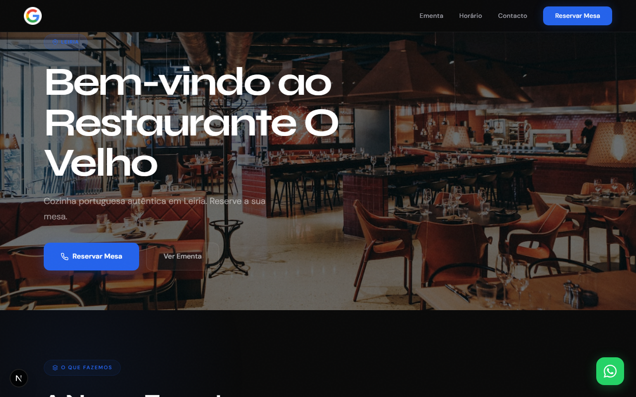 Domínio próprio, design à medida, formulário de contacto, WhatsApp e Google Maps. Fica a aparecer no Google, com segurança e conforme a lei - sem mexer numa linha. O seu único trabalho é aprovar.